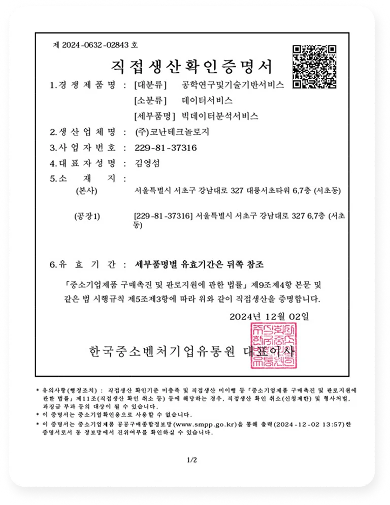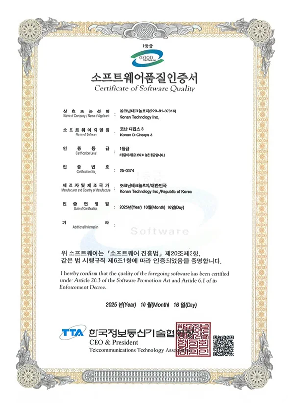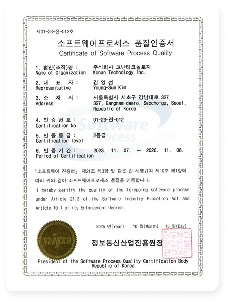코난테크놀로지는 2013년 이후부터 연속 5회에 걸쳐 지속적으로 SP인증을 받고 있습니다.