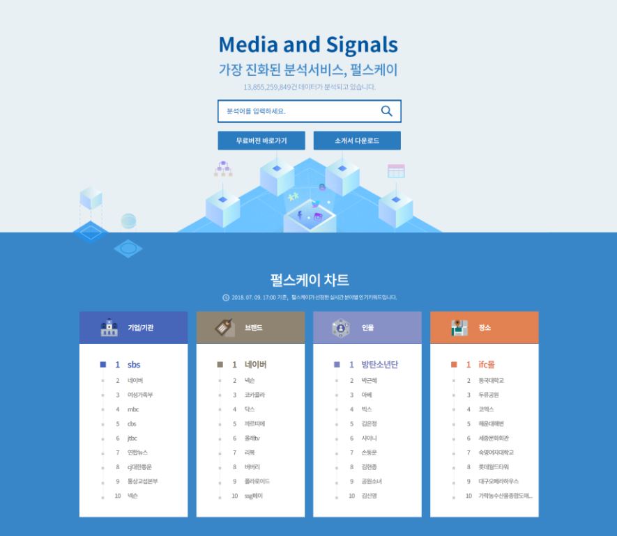 - 최대 7개 매체, 약 140억 건 데이터 커버리지 등 국내 최대 분석서비스 인프라 제공